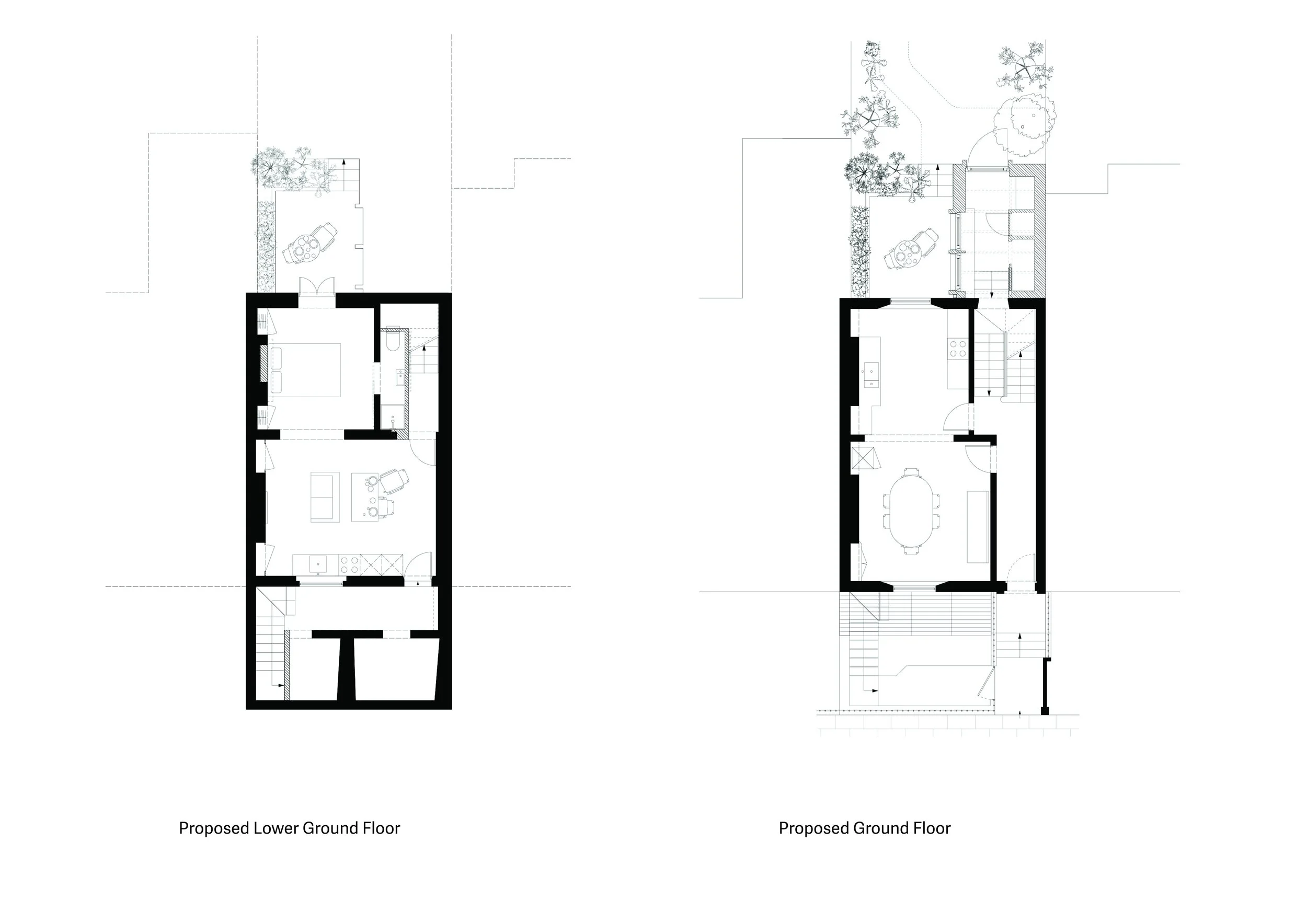 In a recent project, we were challenged to achieve the maximum impact on a small budget within the constraints of the building's listed status. Our strategy included a small rear extension, minor targeted interior interventions, and a new front external staircase, optimising space to meet the client’s needs. At the same time, these interventions also created a stronger connection between the building and rear garden, bringing more light into the lower ground floor.