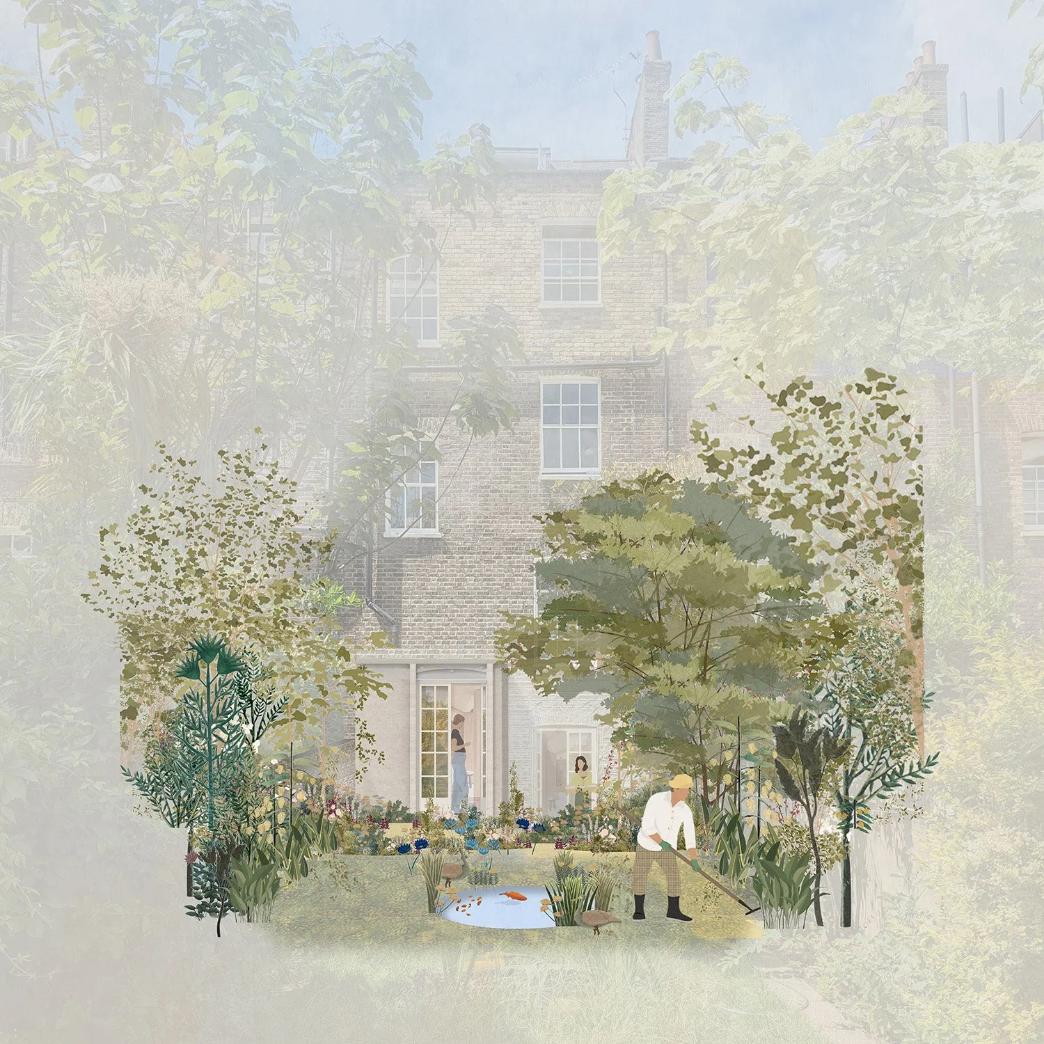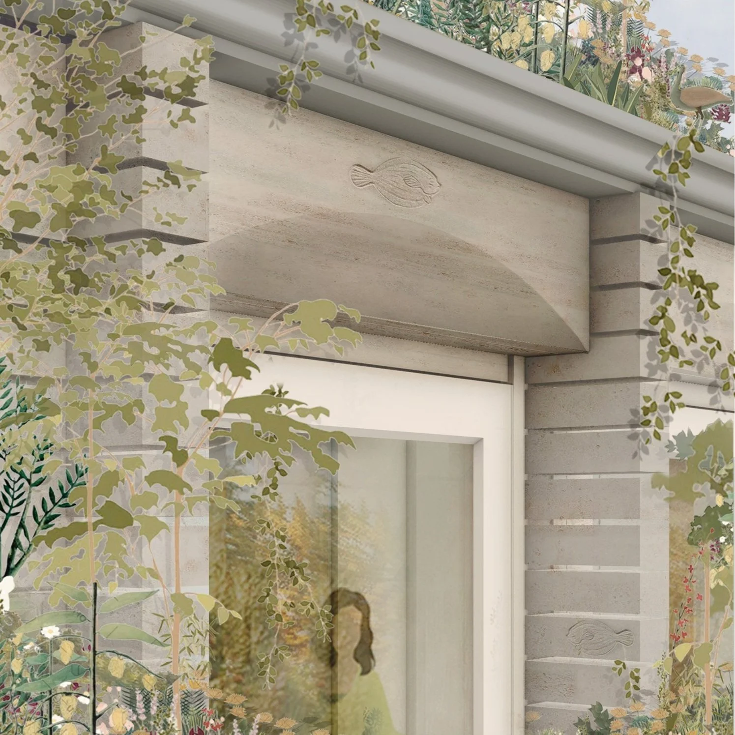 Conceived as an evolving project, the design incorporates stone elements intended for future carving, with bespoke reliefs by sculptor Edgar Ward planned for the next phase.