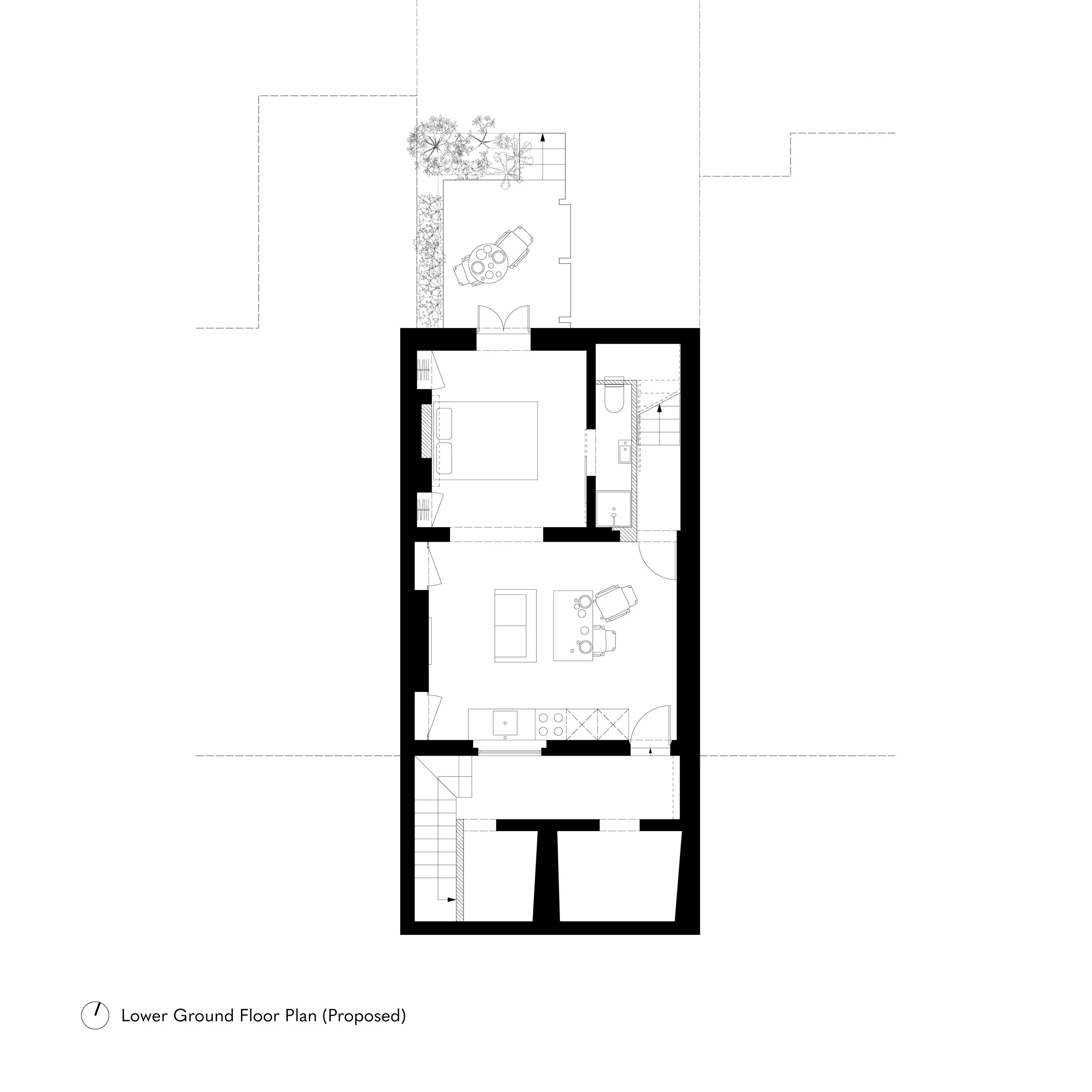 The project unlocks previously underutilised spaces in the property, and enhances the connection with the garden. This was achieved with a a sensitively designed front external staircase, an internal renovation of the lower storey, and a small extension to the rear housing a utility room and WC.
